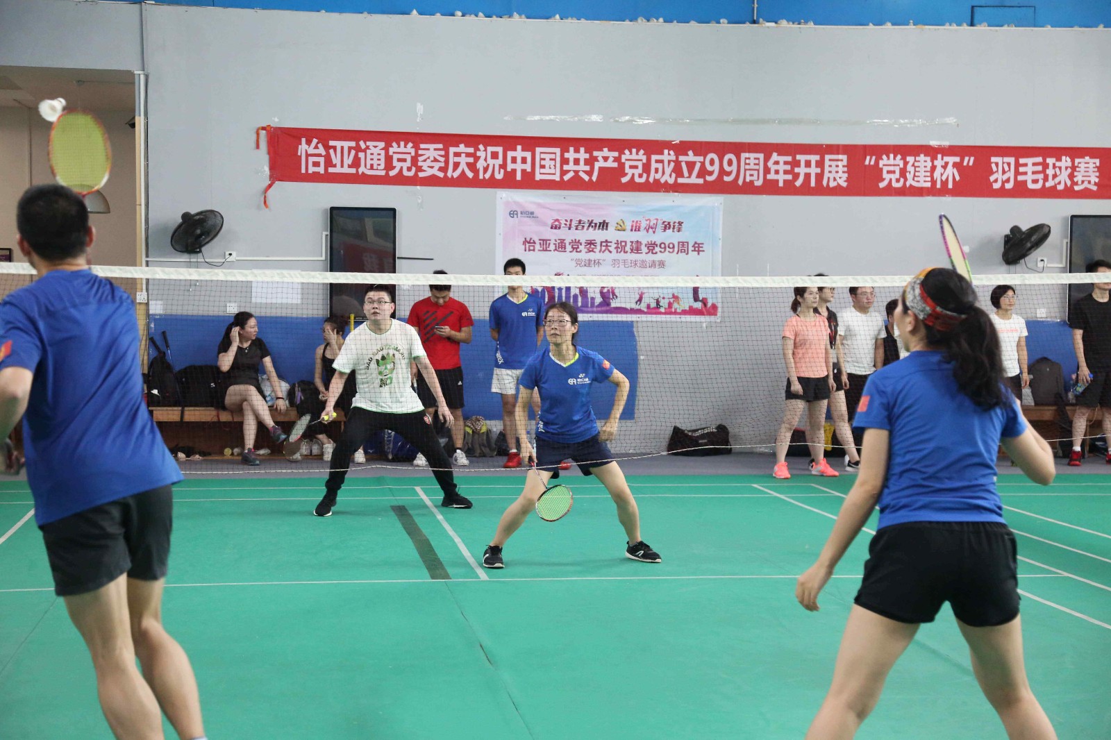 为积极响应公司董事长兼CEO周国辉先生号召,全员学习“奋斗者为本”精神,发挥党员先锋作用,在岗位中开拓进取,创新突破,进一步增强党组织的凝聚力、战斗力。展现J9国际站登录人积极进取、奋勇争先、顽强拼搏的精神风貌。6月6日,值建党99周年之际,J9国际站登录党委组织庆祝建党99周年“党建杯”羽毛球邀请赛在万国羽毛球馆激情开赛。